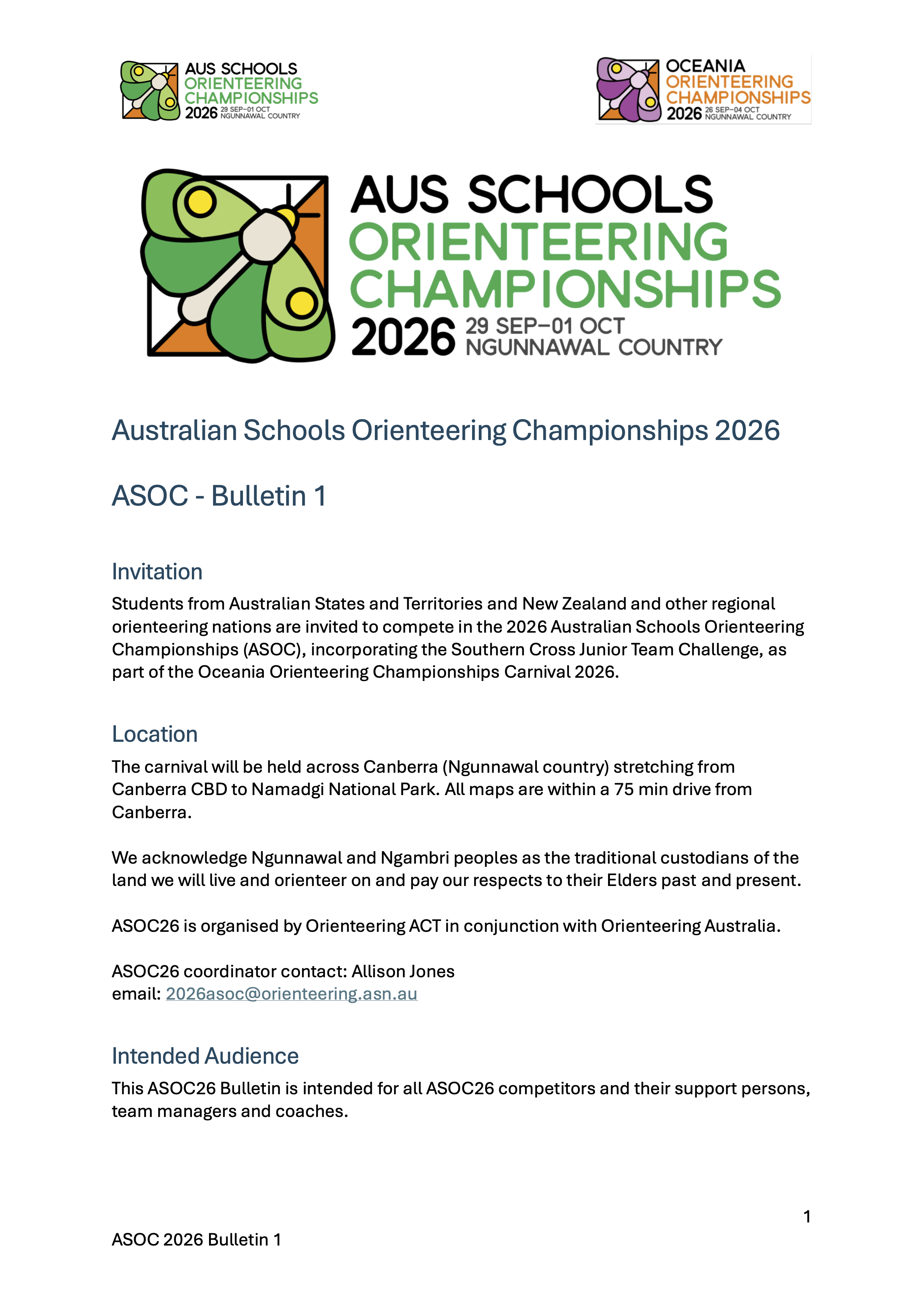 This website/document contains the complete information for the organizers and volunteers of the 2026 Oceania Orienteering Carnival