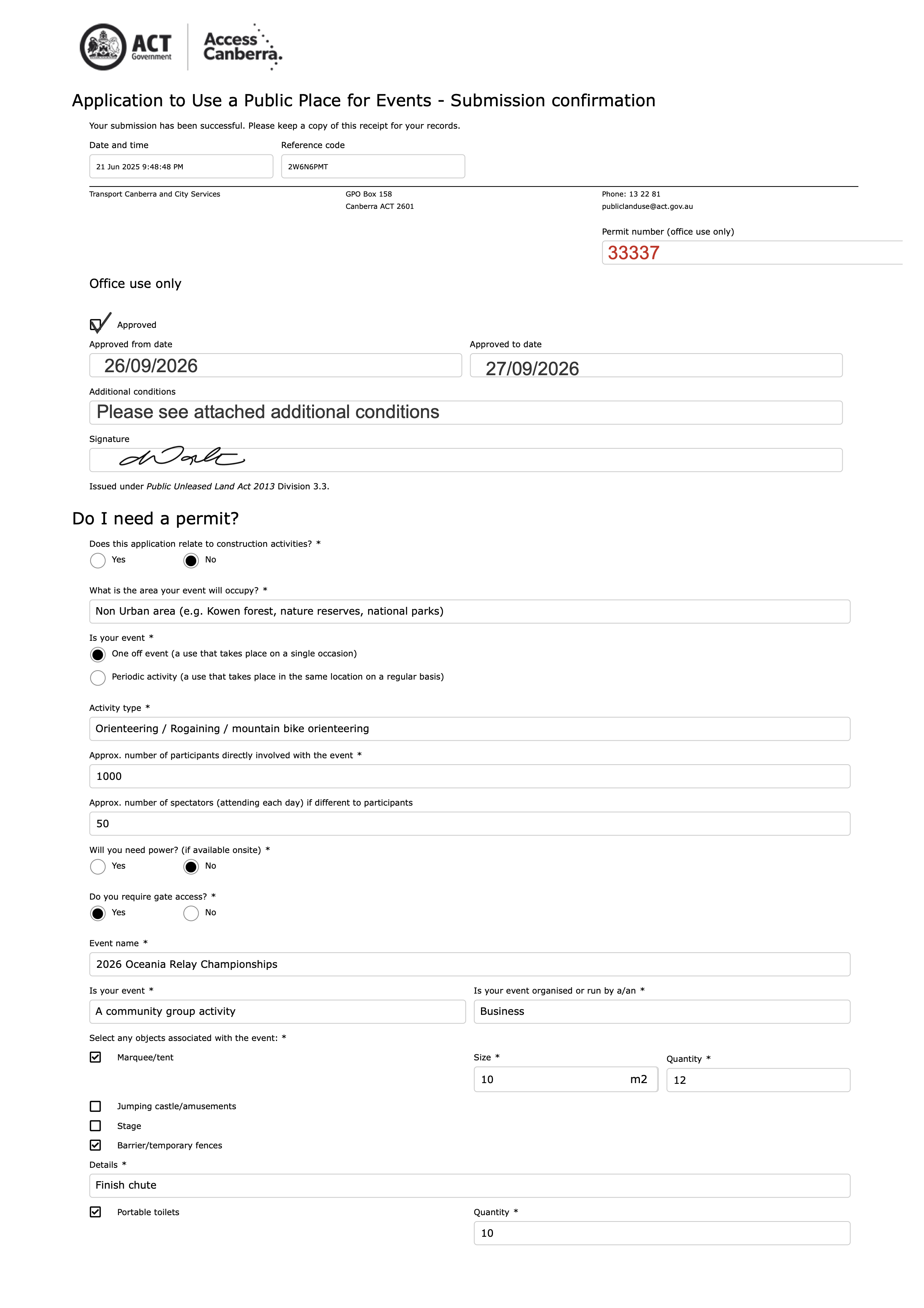 Severe weather conditions, including high fire danger, strong winds, and storms, may result in an amendment of the event permit, or postponement of the event if the PCS considers it necessary for public safety |