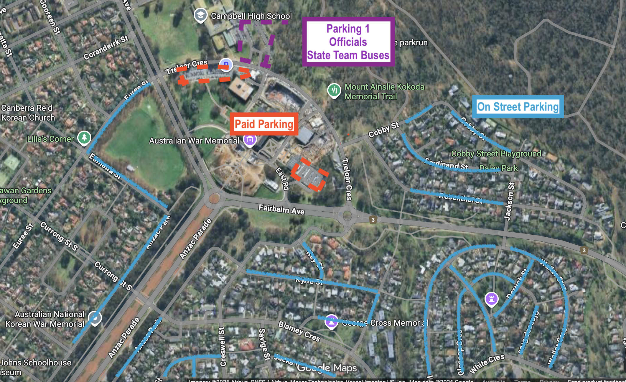 Paid parking at the war memorial carparks
