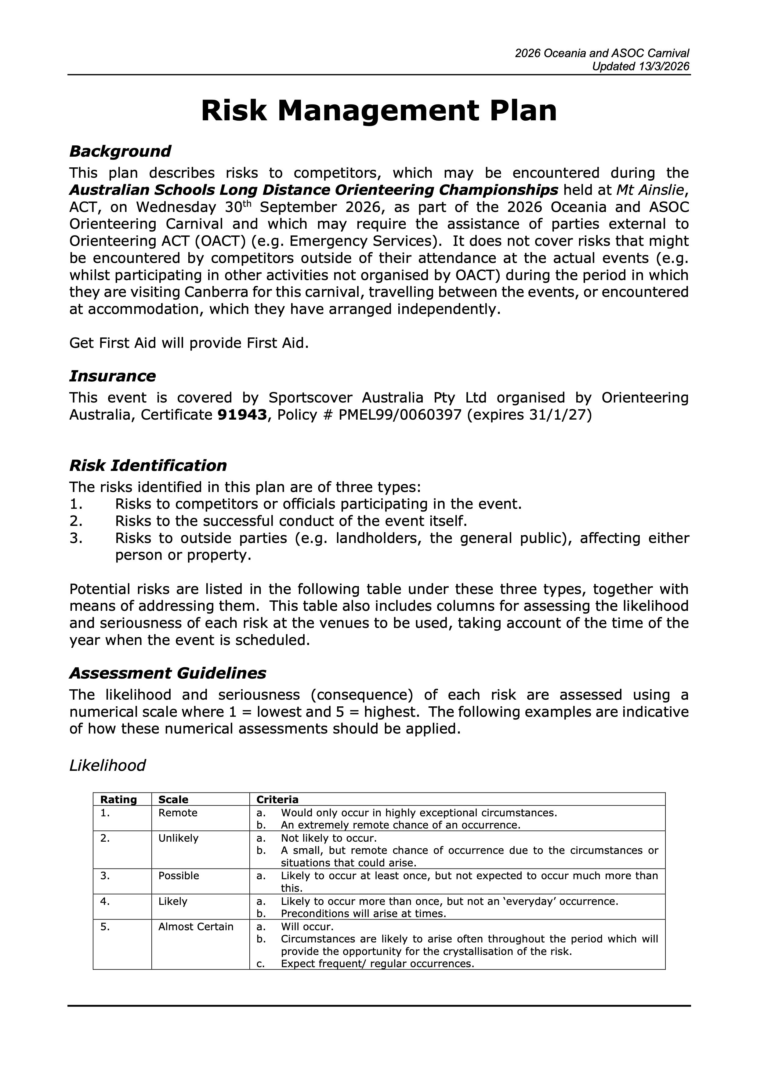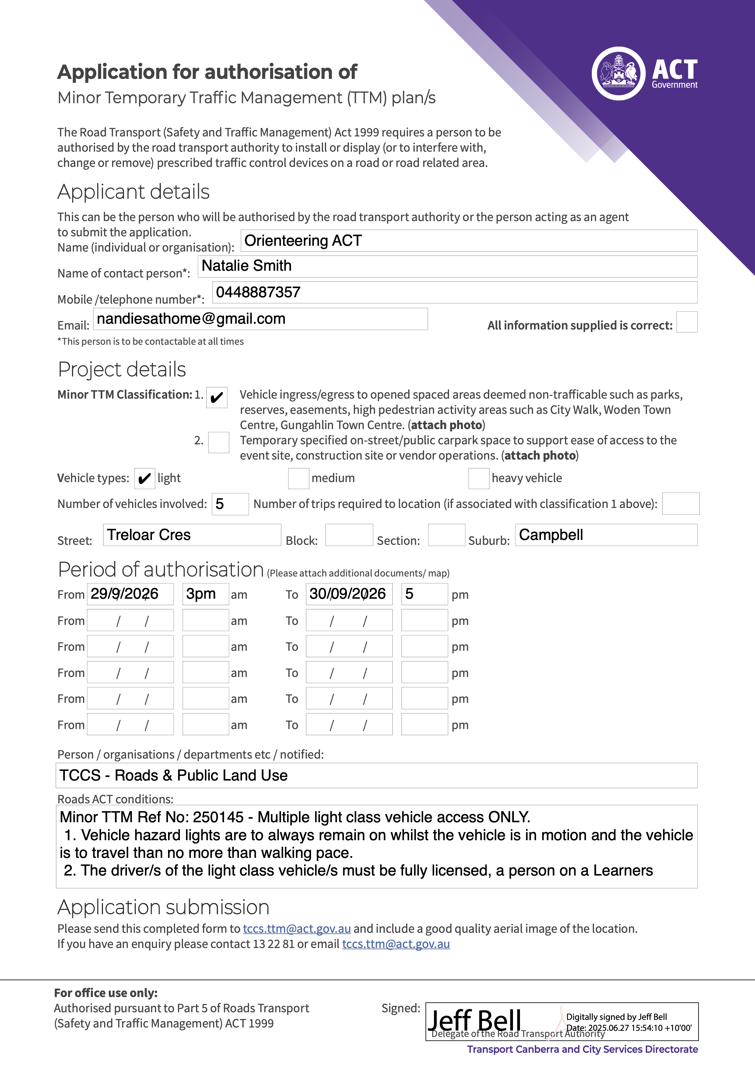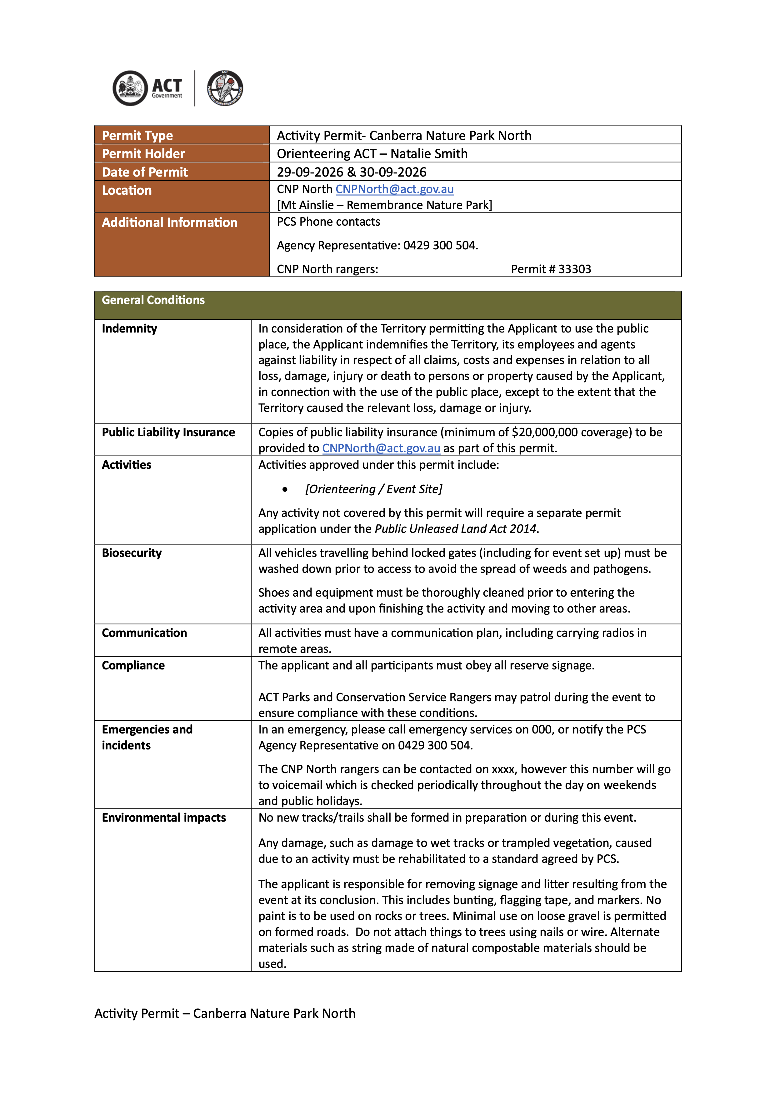 Please ensure local horse riders are made aware of your planned presence by contacting the ACT Equestrian Association via this link htps://www.actea.asn.au/contacting-actea/ at least 7 days prior to the event taking place |