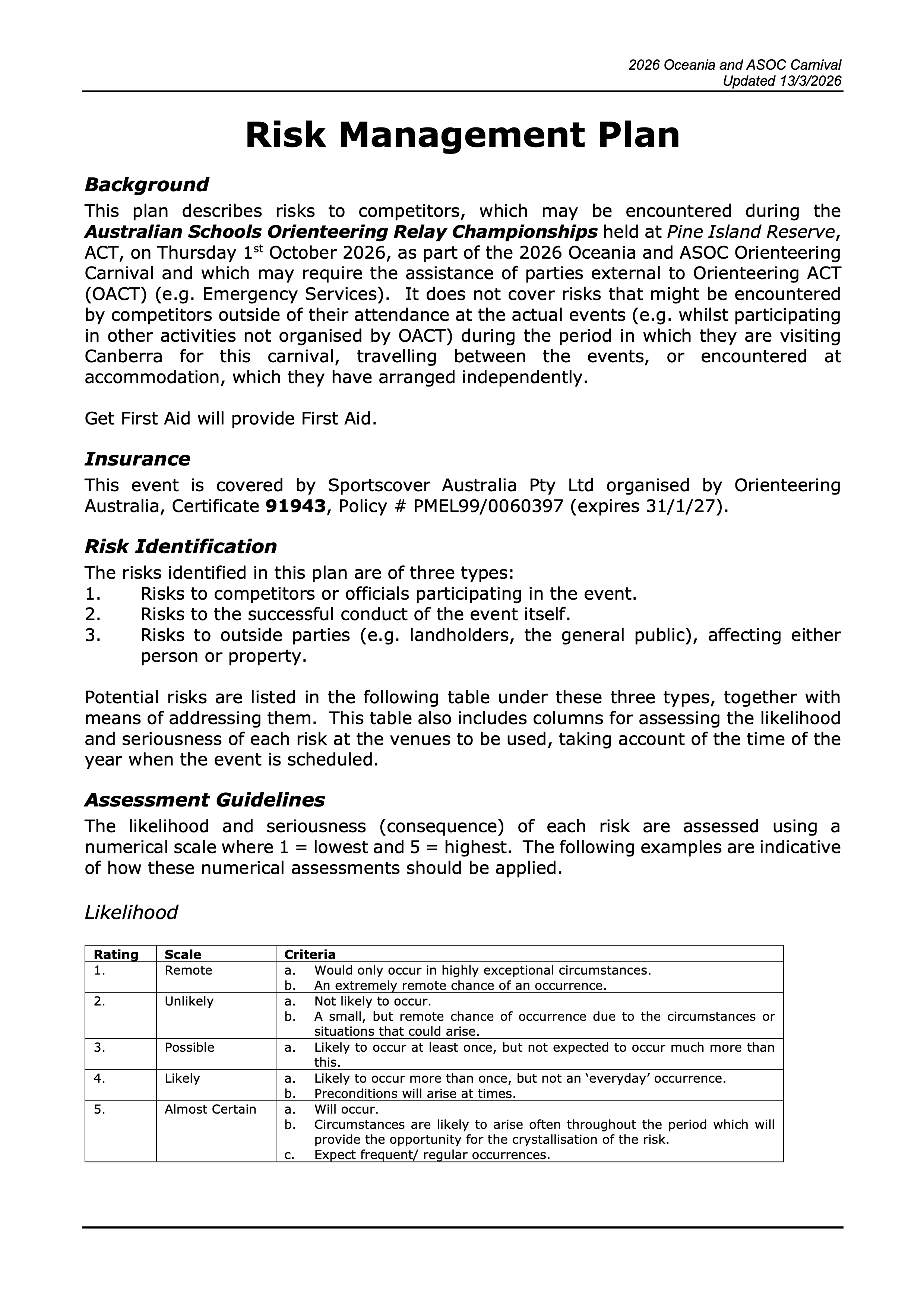 In the event of a Total Fire Ban (TOBAN) the event will be postponed by PCS |